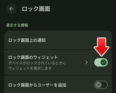 ロック画面ウィジェットは標準ではオフなので、設定で有効化する必要があります。