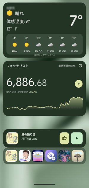 ホーム画面にウィジェットを置くと、アプリアイコンもあるので窮屈になりがちですが、ロック画面ならウィジェット専用なので見やすいです。