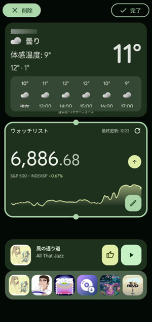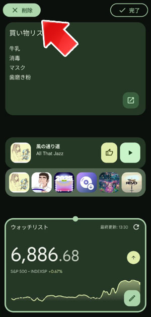 左上の削除ボタンをタップすると、ウィジェットが削除されます。