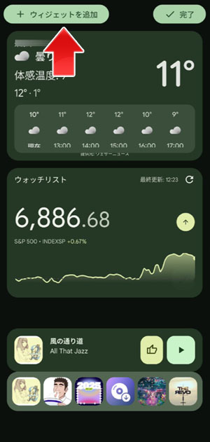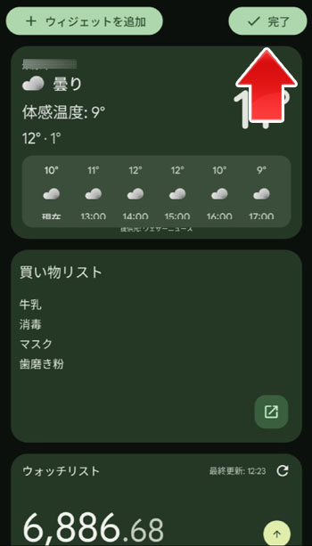 ウィジェットを配置したら、右上の完了ボタンをタップして終了です。