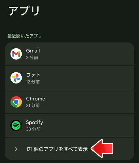アプリをすべて表示をタップ。