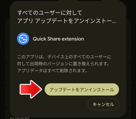 アップデートをアンインストールボタンをタップします。