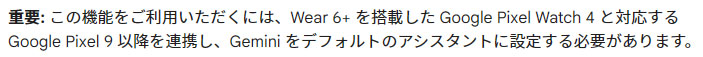 Pixel Watch4 の大きな新機能として紹介されていますが、実は Pixel9 以降を使ってないと使えません。結構ハードルが高いです。