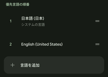 日本語を英語の上へ移動すると、システム言語が日本語に戻ります。