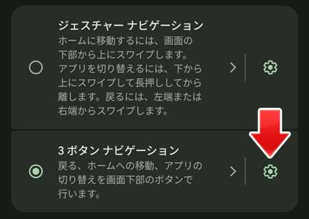 3ボタンナビゲーションの歯車アイコンをタップします。