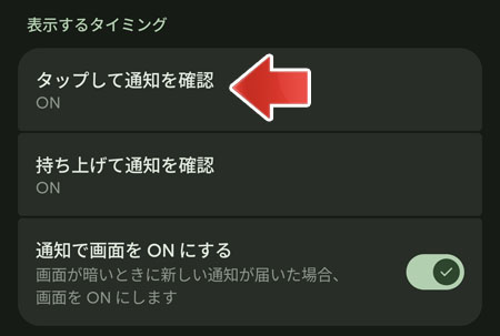 タップして通知を確認のスイッチを切り替えます。